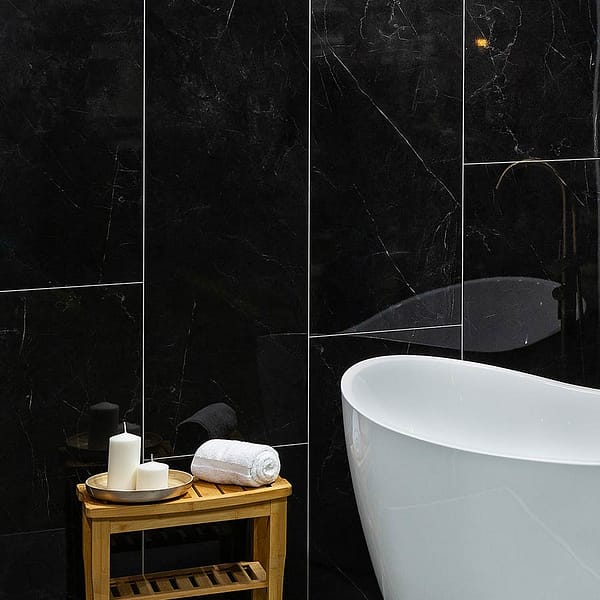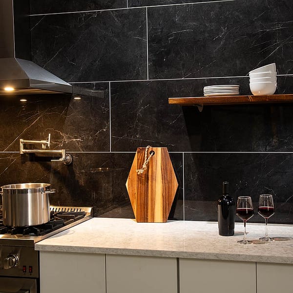 Monument Large-Format Architectural Panels offer the luxury look of natural stone at a fraction of the price. This waterproof, grout-free wall system installs twice as fast as traditional tile.