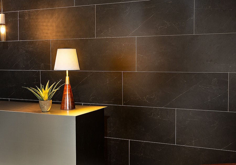 Etna’s charcoal black base is accentuated with gray tones and finished with white and metallic veining.